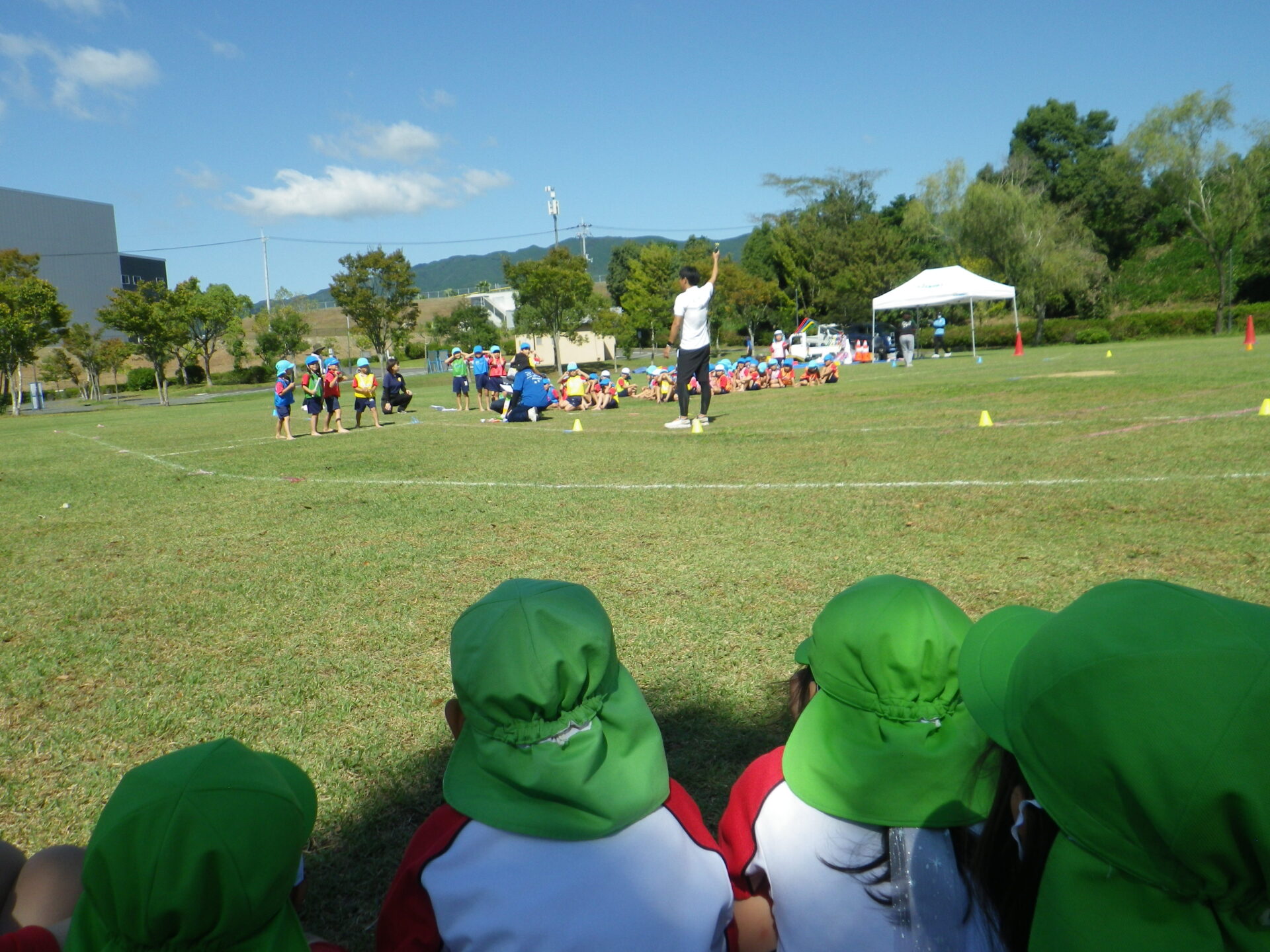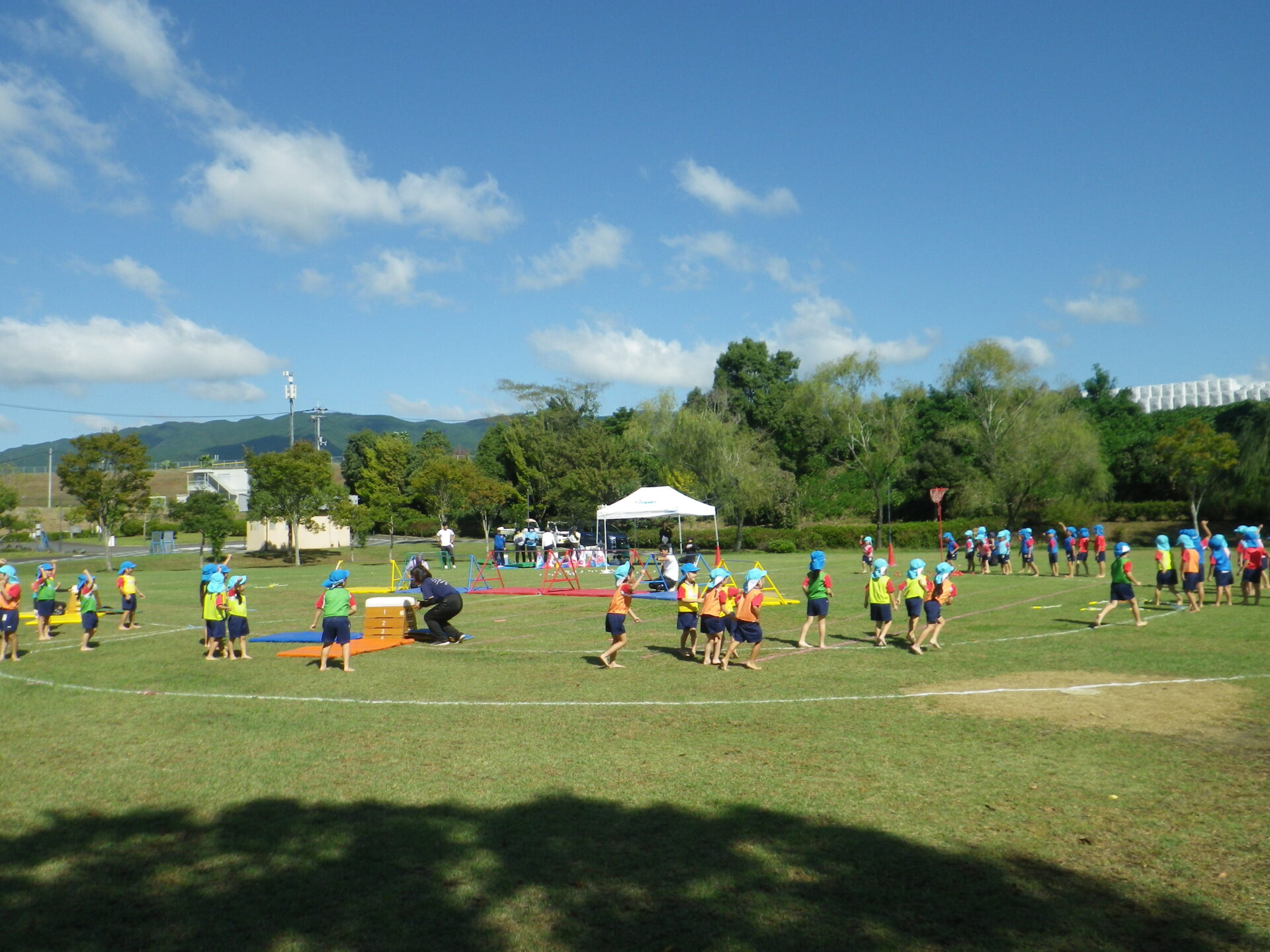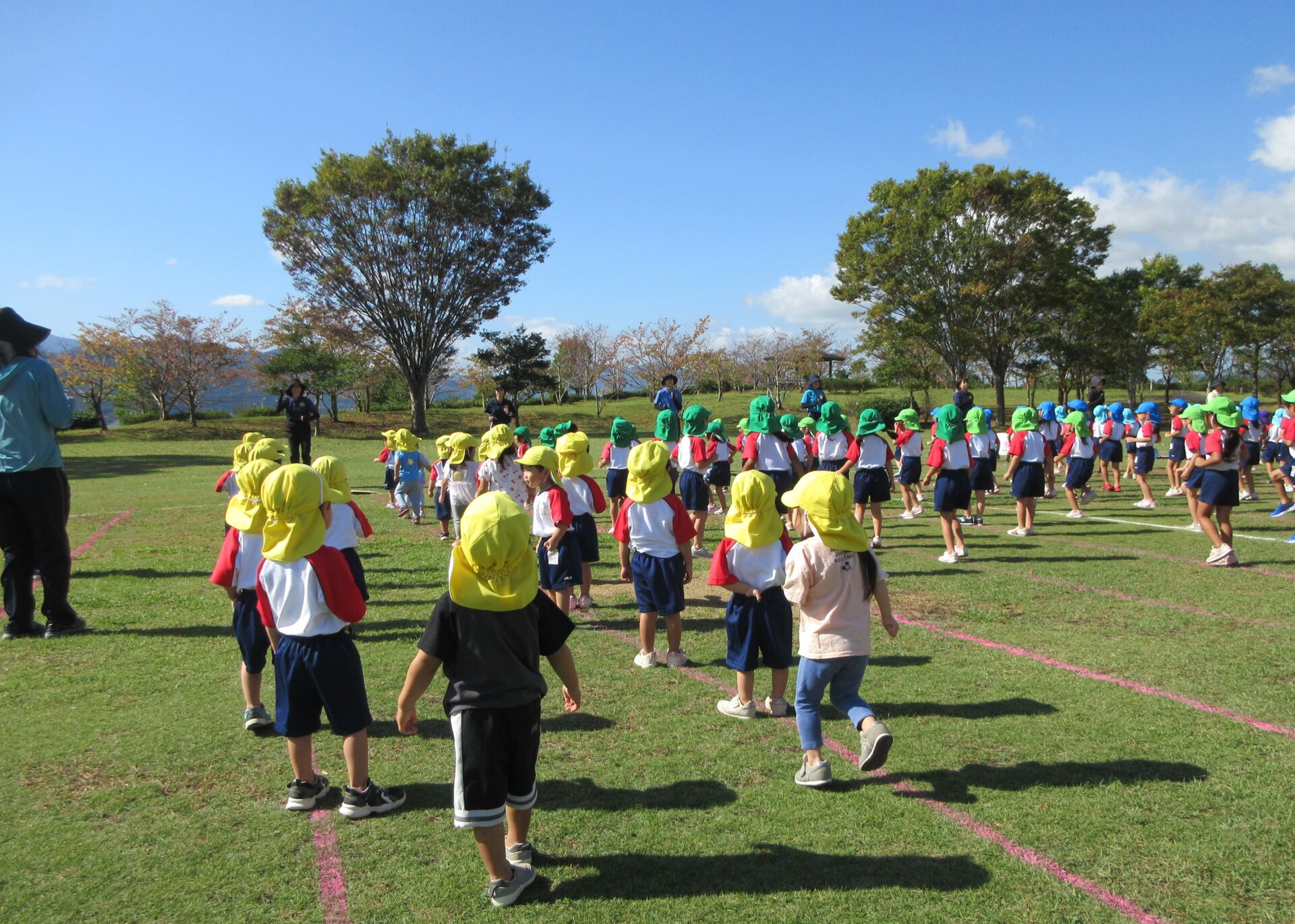 気持ちの良い青空の下、2歳から5歳さんは中央公園へ行きました。