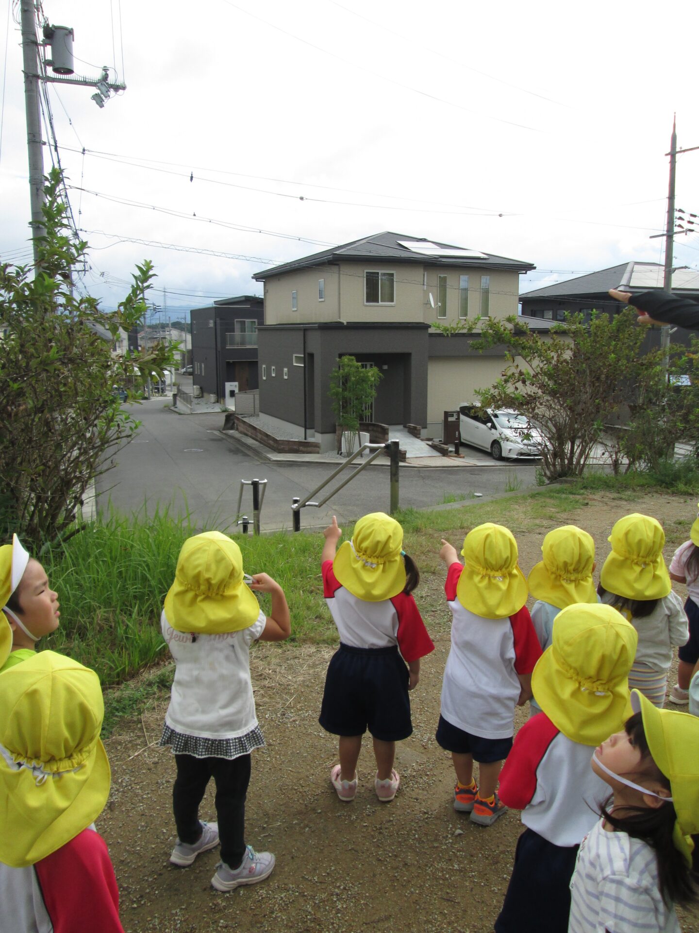お散歩の途中ヘリコプターの音が聞こえました。