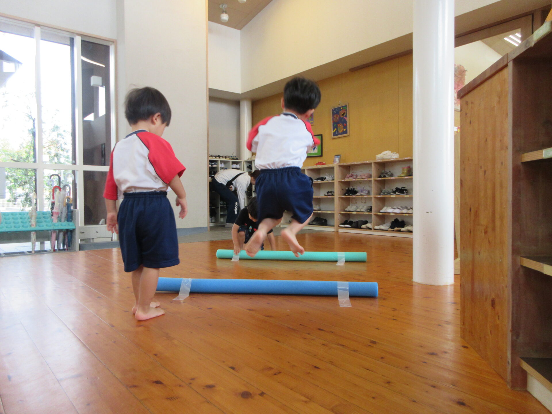 両足ジャンプやくまさん歩きも上手になり「先生見ててね」と得意気です。