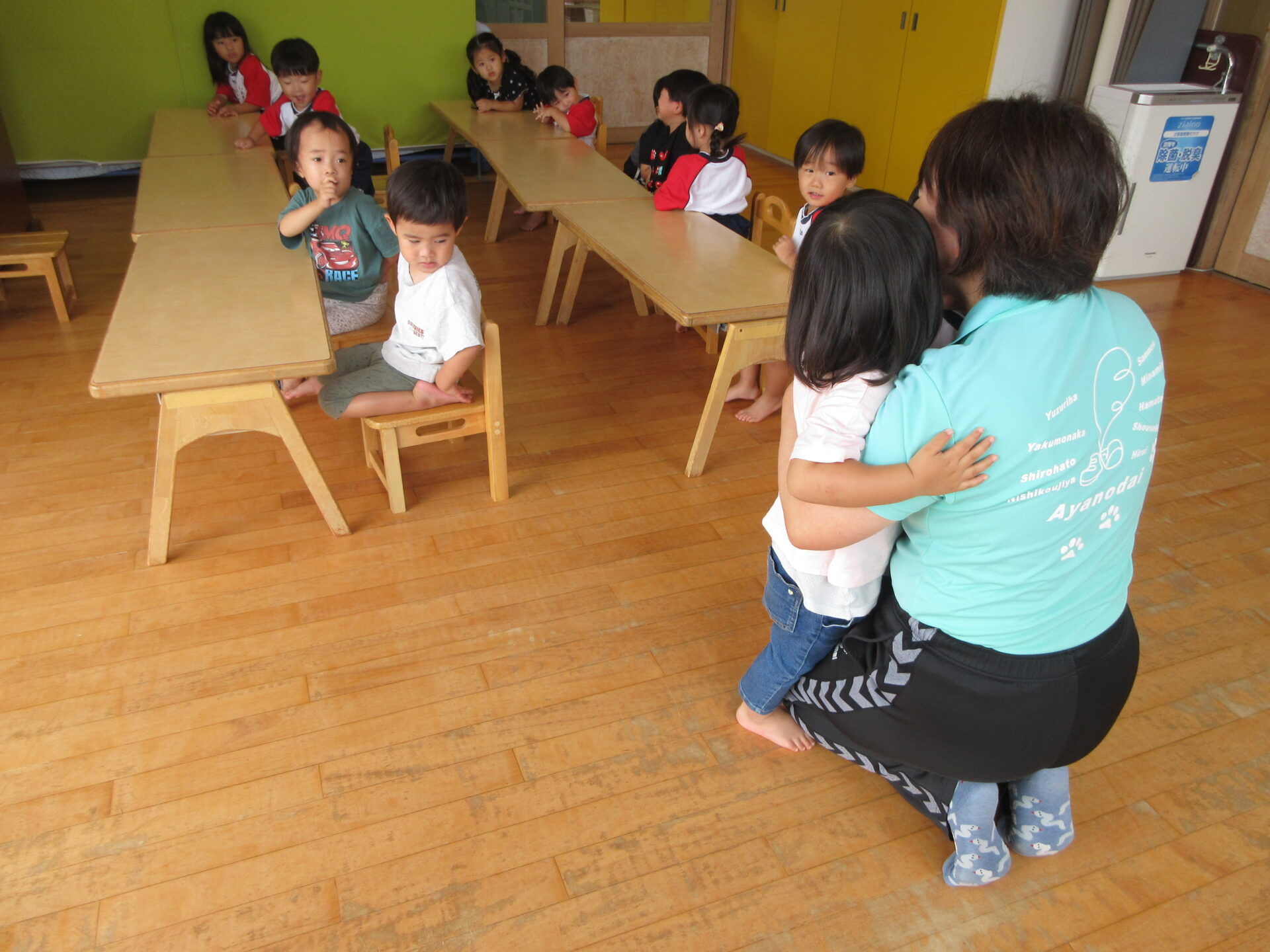 土曜日は運動会だったのでみんなよく頑張ったねと順番にギューのプレゼントをしました(*^^*)