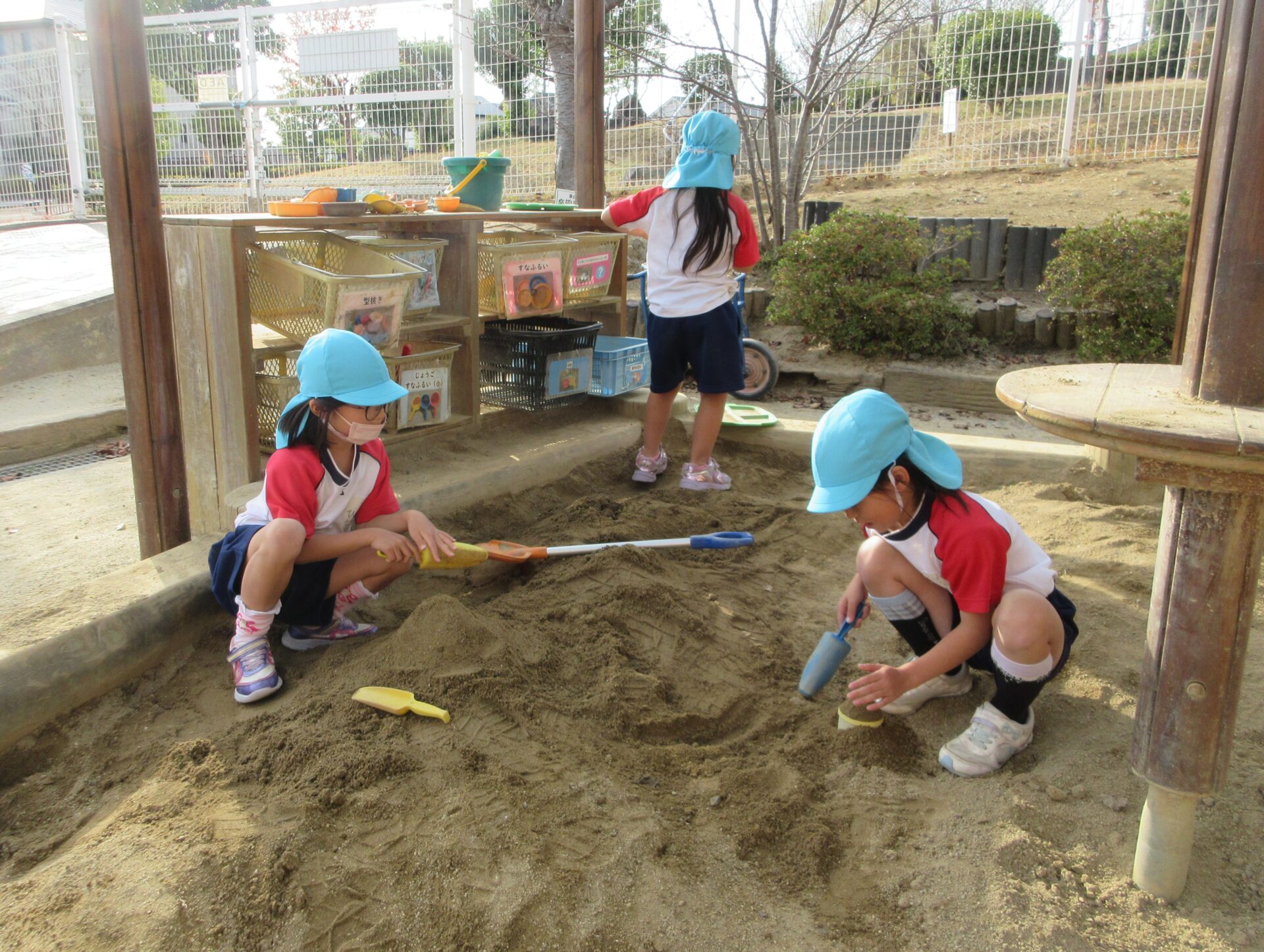 2025.12.01 園の様子今日から12月!!朝晩は気温も下がり寒い日も増えてきましたが、天気が良い日は園庭や戸外に出て元気いっぱい過ごしています。園庭では砂場や三輪車など好きな遊びを見つけて友達と一緒に楽しんでいました。