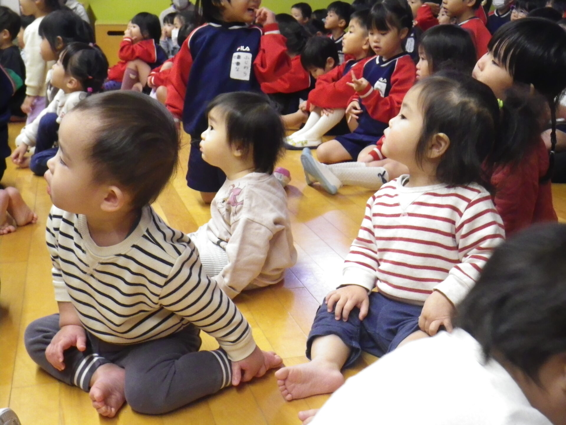 今日は、ホールで3・4・5歳児が発表会の練習をしていたので見学に行ってきました!