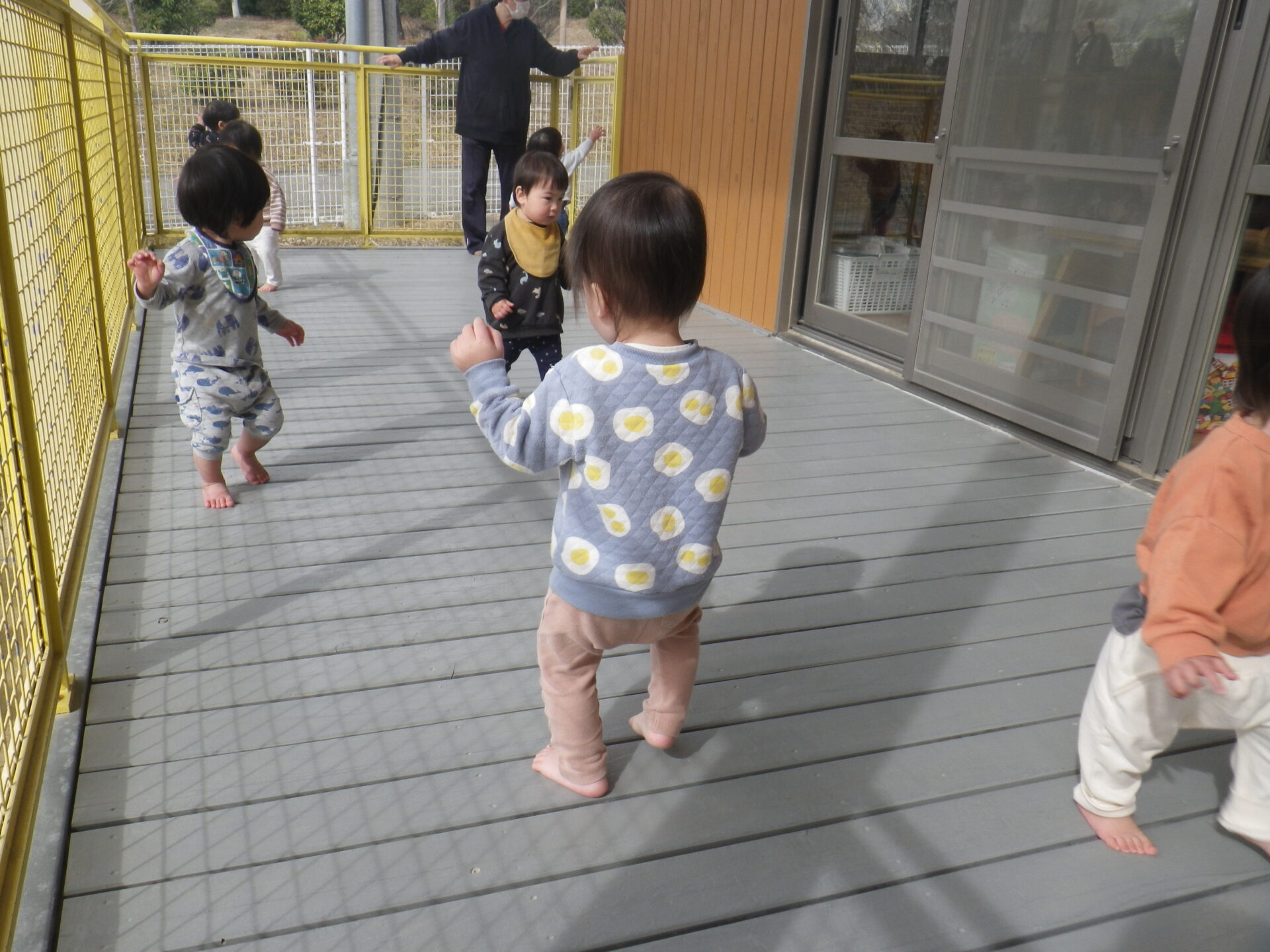 今日はびーんずぐみのみんなで園内散歩に行ってきました。