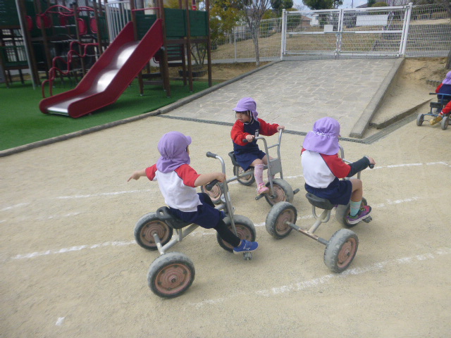 園庭では三輪車に乗ったり、砂場で遊んだりと思いきり楽しみました♪